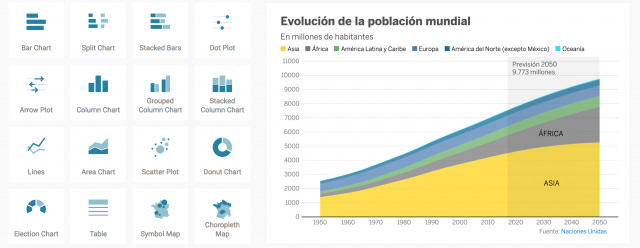 الخدمة تتيح للمستخدم تصميم وبناء الرسوم البيانية بخطوات بسيطة جدا، والأهم من هذا الرسوم البيانية تكون تفاعلية بحيث يمكن تغيير بيانات الرسم البياني بشكل مباشر أو على سبيل المثال إخفاء معلومة.